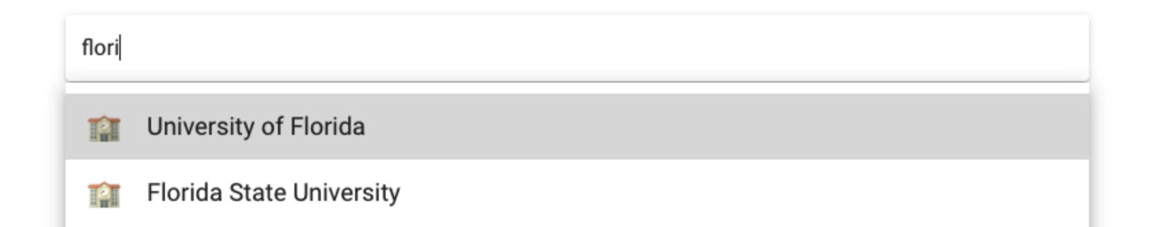 Here's an example of an autocomplete component that lets users quickly select an institution: